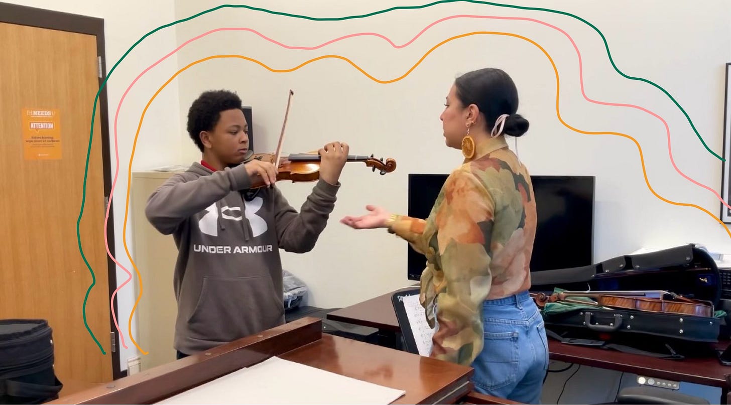 To be honest, as a violinist, I wasn’t always mindful about repeating and why I was doing it, or what my end goal was. But lately, with my students, I’m realizing the importance of mindful repetition. In our lessons, it often boils down to repeating and improving—that’s it.